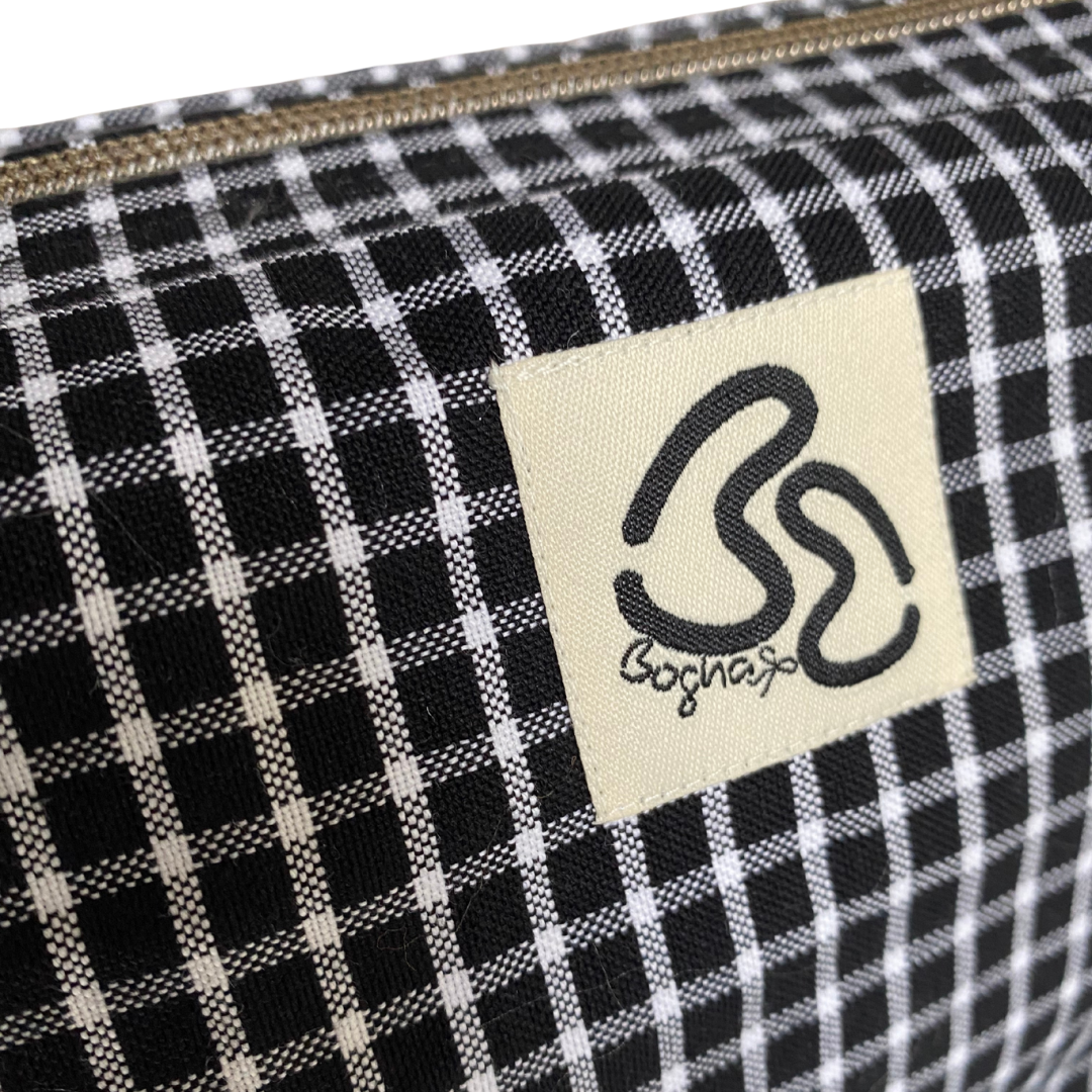 Made from dead-stock textiles , the Navy & White Ruched Pouch can be worn as a crossbody or shoulder bag, making it as versatile as it is unique.
